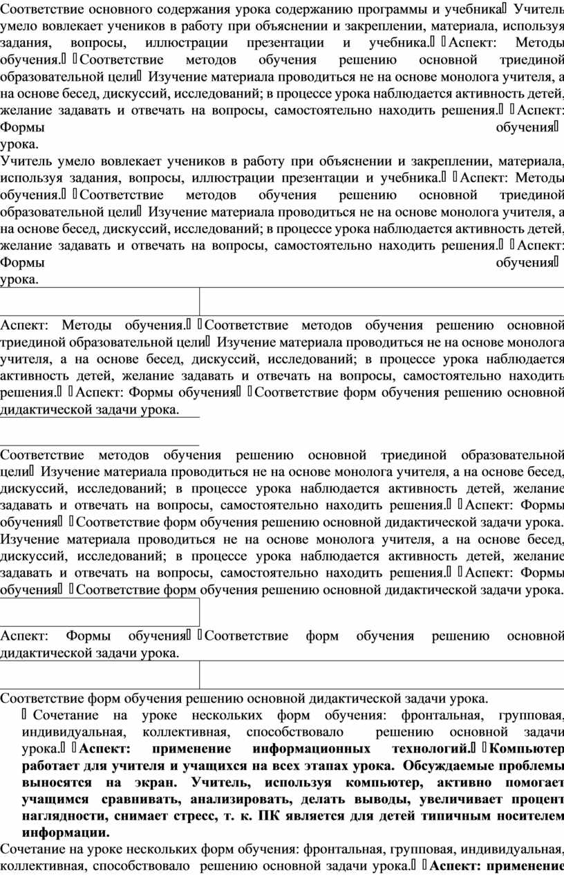 1. Соответствие дидактической задачи отобранному содержанию 2. Результативность решения дидактической задачи урока |