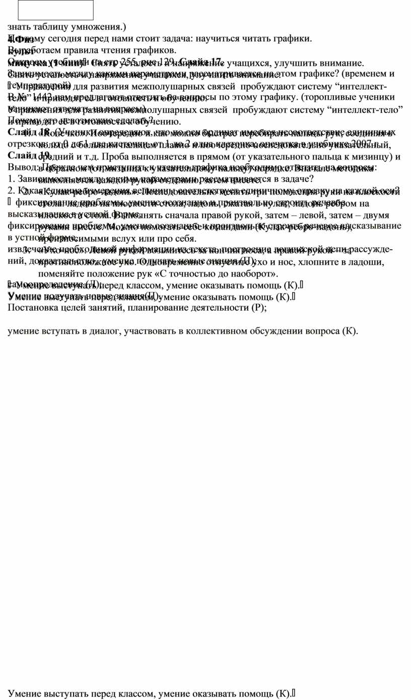 Умение выступать перед классом, умение оказывать помощь (К). |