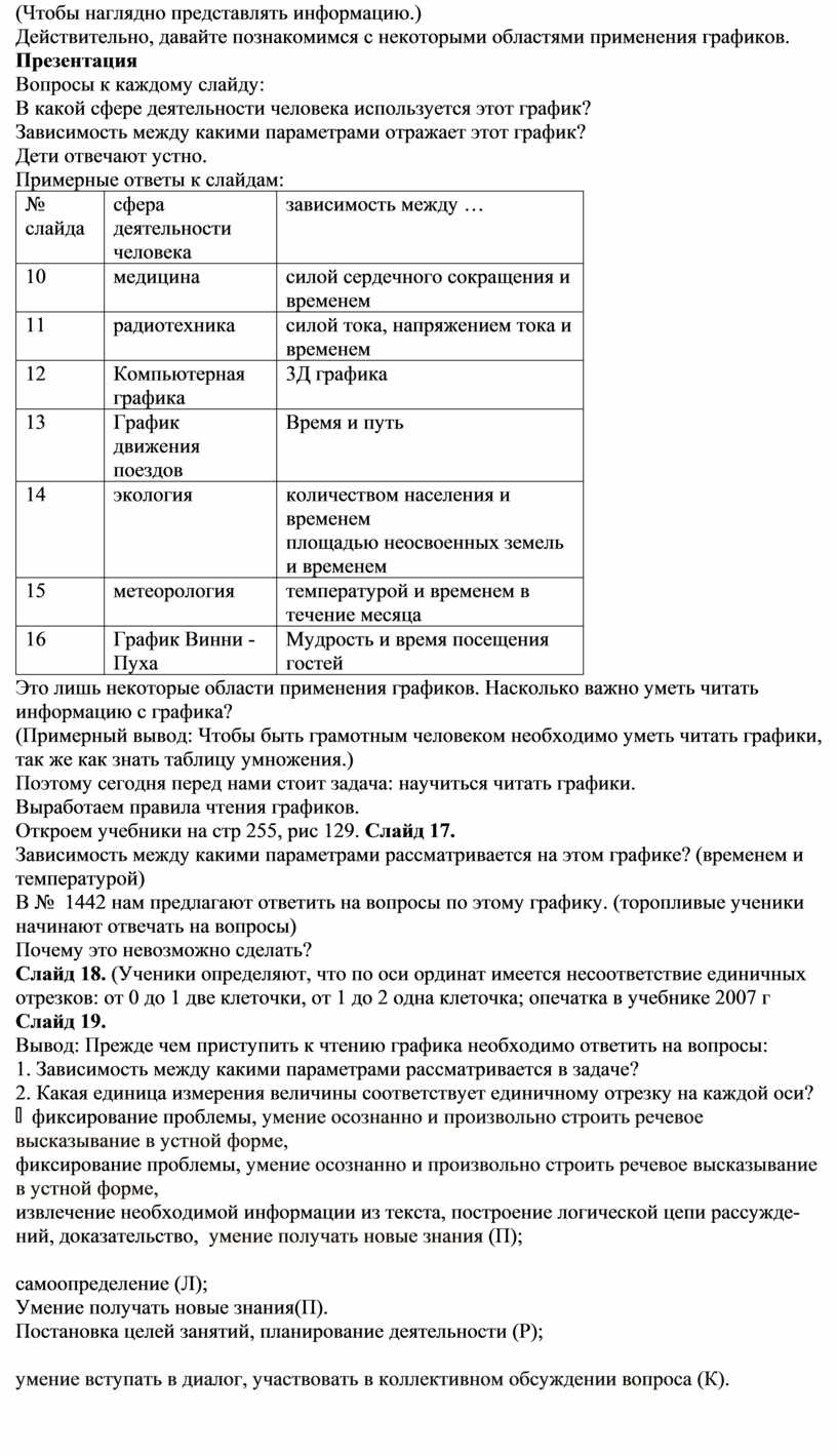 Понимание. Использование графиков в различных областях человеческой деятельности.