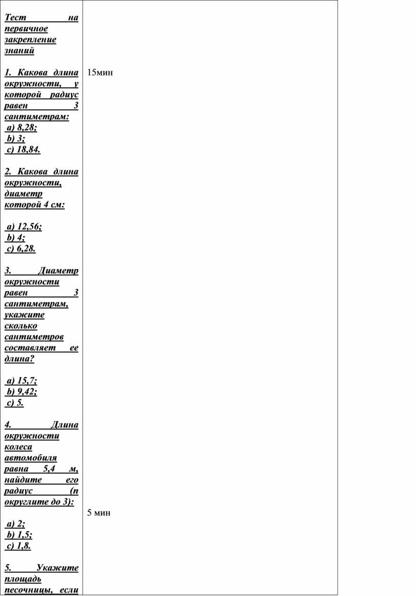 1. Какова длина окружности, у которой радиус равен 3 сантиметрам: a) 8,28; b) 3; c) 18,84.