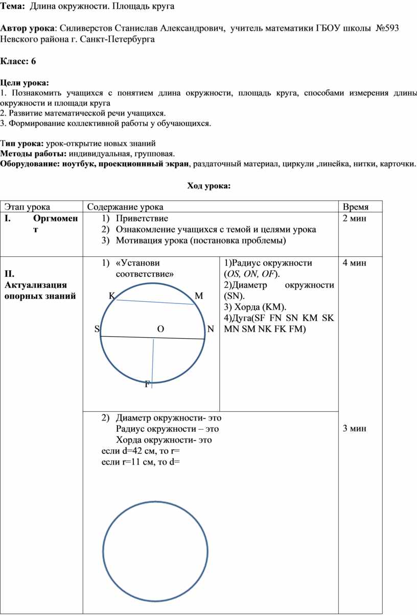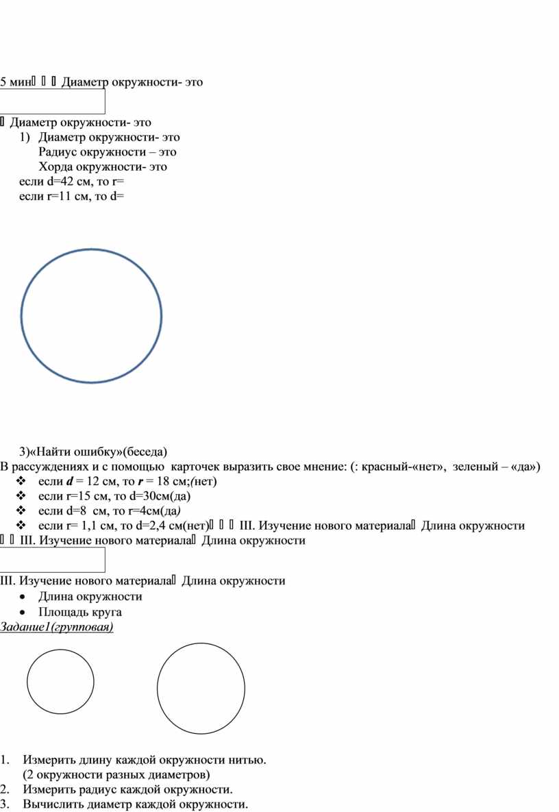 1. Познакомить учащихся с понятием длина окружности, площадь круга, способами измерения длины окружности и площади круга