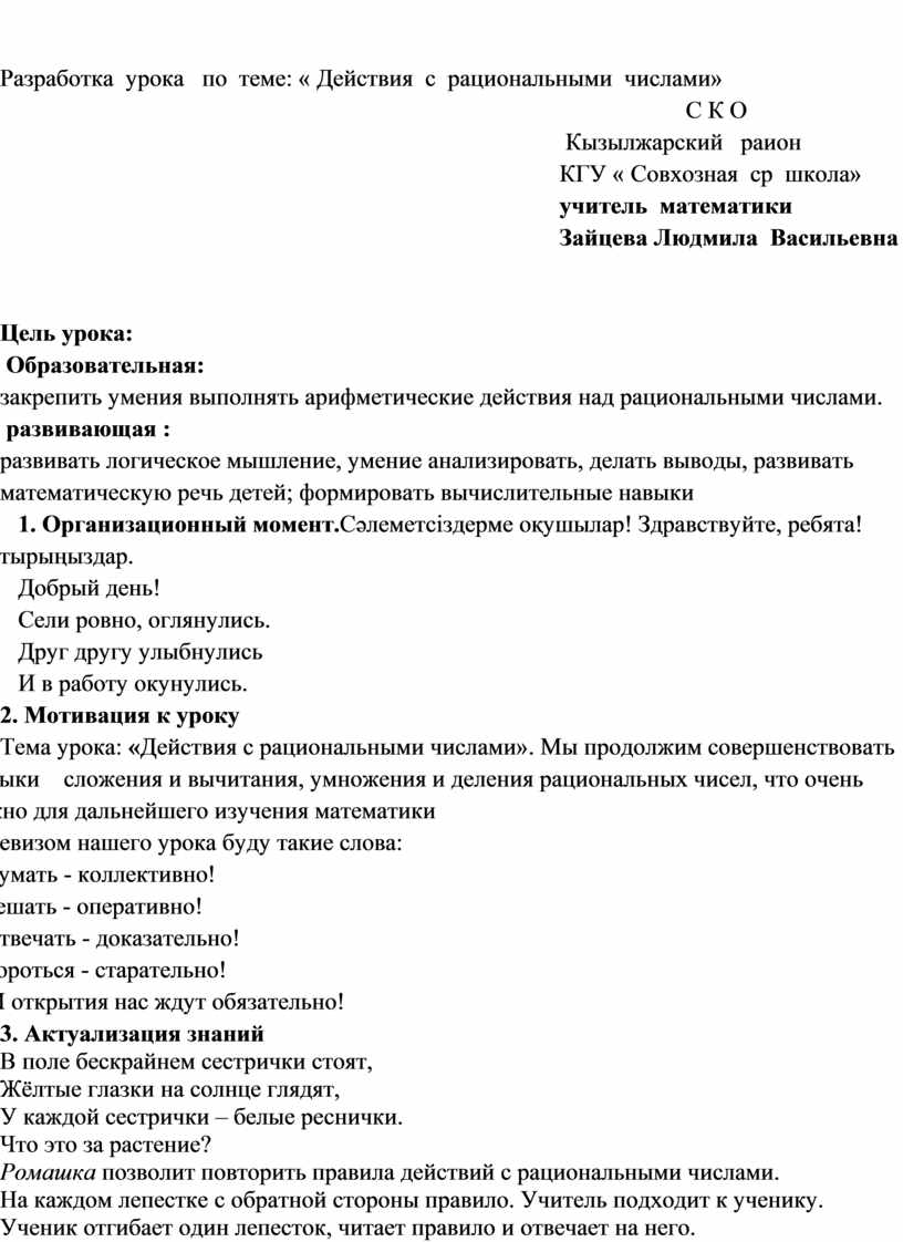 закрепить умения выполнять арифметические действия над рациональными числами.