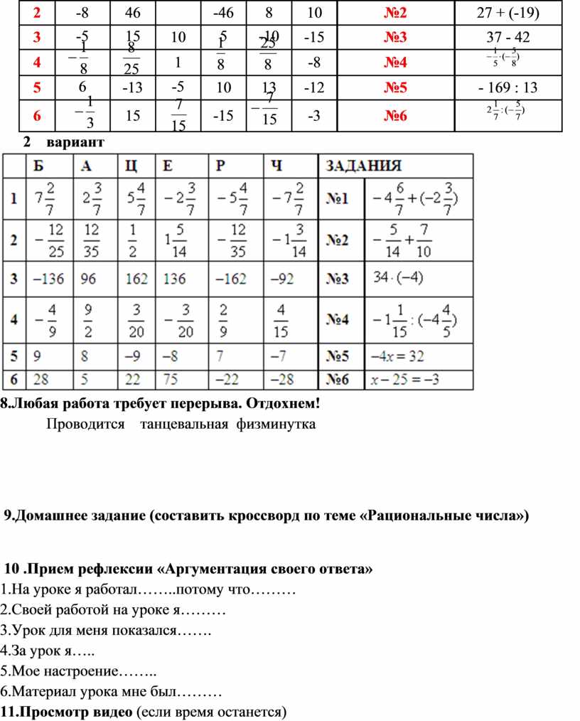 9.Домашнее задание (составить кроссворд по теме «Рациональные числа»)