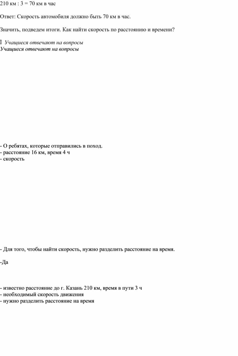 - известно расстояние до г. Казань 210 км, время в пути 3 ч - необходимый скорость движения - нужно разделить расстояние на время