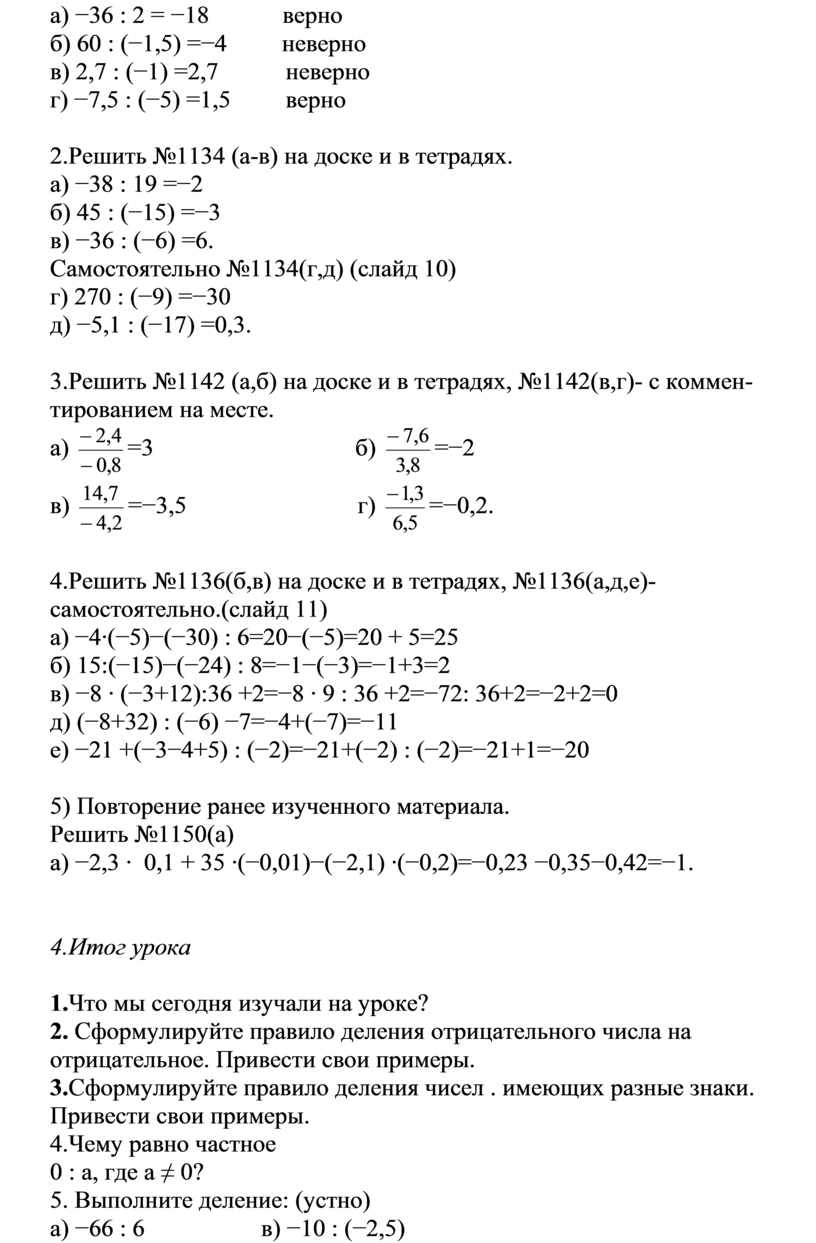 2. Сформулируйте правило деления отрицательного числа на отрицательное. Привести свои примеры.