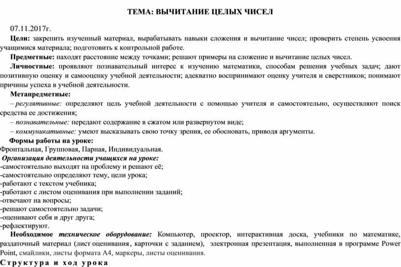 Необходимое техническое оборудование: Компьютер, проектор, интерактивная доска, учебники по математике, раздаточный материал (лист оценивания, карточки с заданием), электронная презентация, выполненная в программе Power Point, смайлики, листы формата А4, маркеры, листы оценивания.
