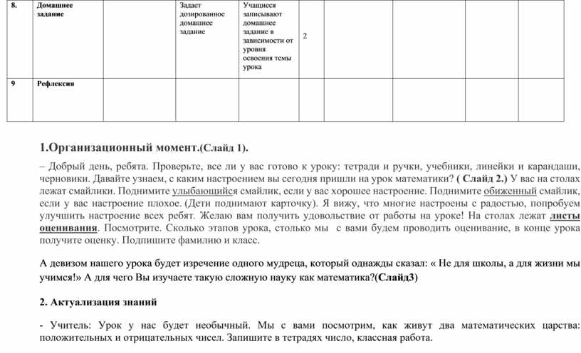Знакомство с технологической картой урока, уточнение критериев оценки |