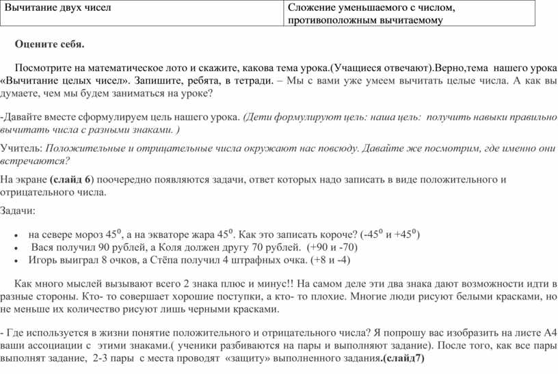 тема: Вычитание ЦЕЛЫХ ЧИСЕЛ