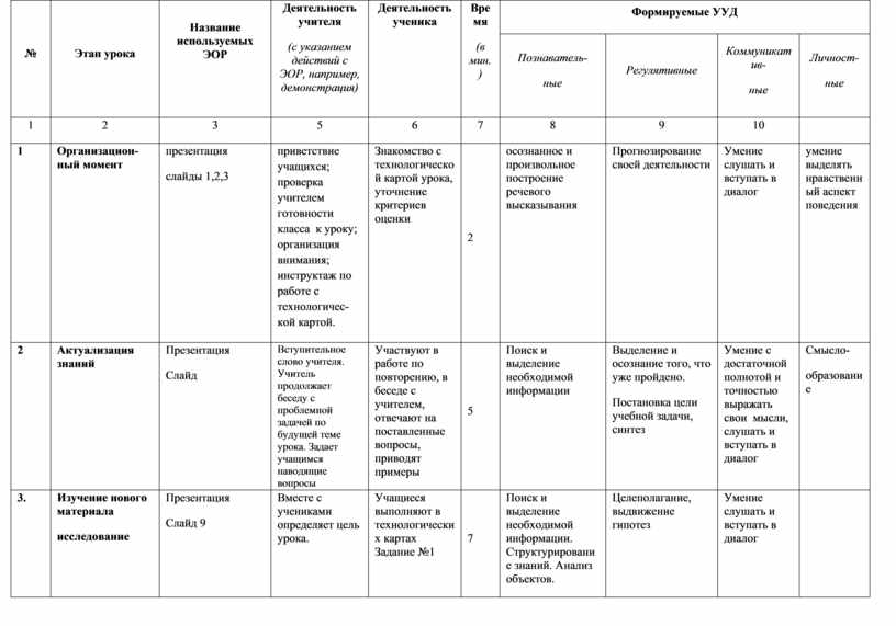приветствие учащихся; проверка учителем готовности класса к уроку; организация внимания; инструктаж по работе с технологичес-кой картой. |