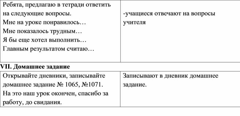 Открывайте дневники, записывайте домашнее задание № 1065, №1071. На это наш урок окончен, спасибо за работу, до свидания. |