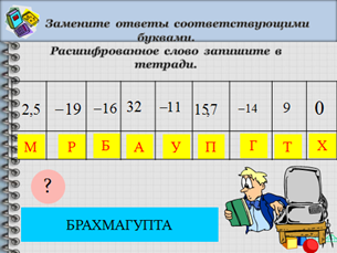 Замените ответы соответствующими буквами. Расшифрованное слово запишите в тетради (слайд 9).