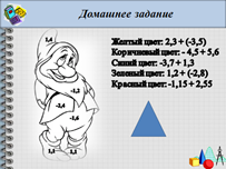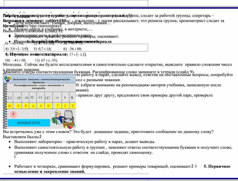 Тема урока: «Сложение чисел с разными знаками» ( продолжительность урока 35 мин)