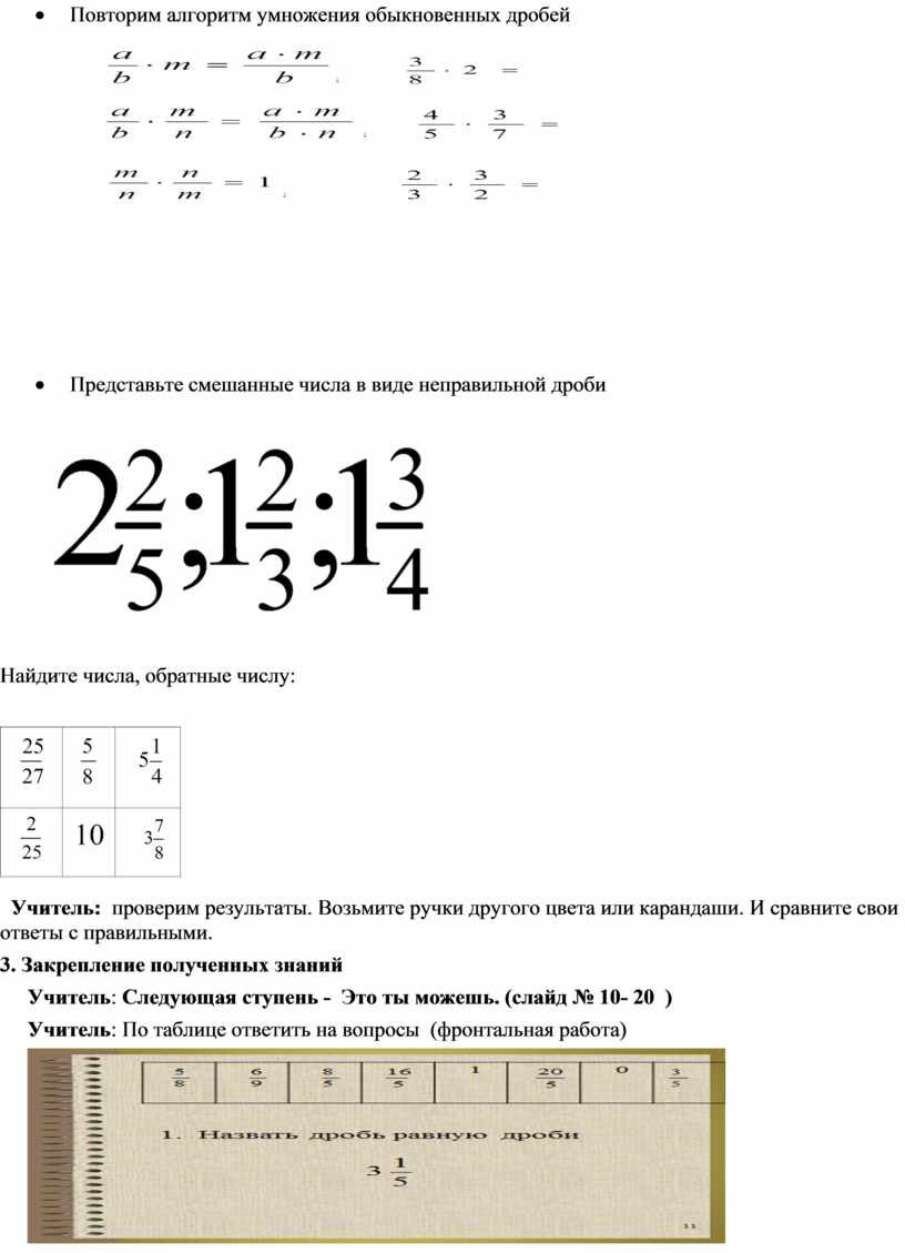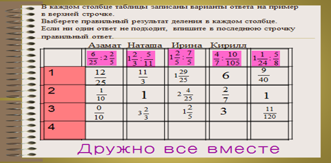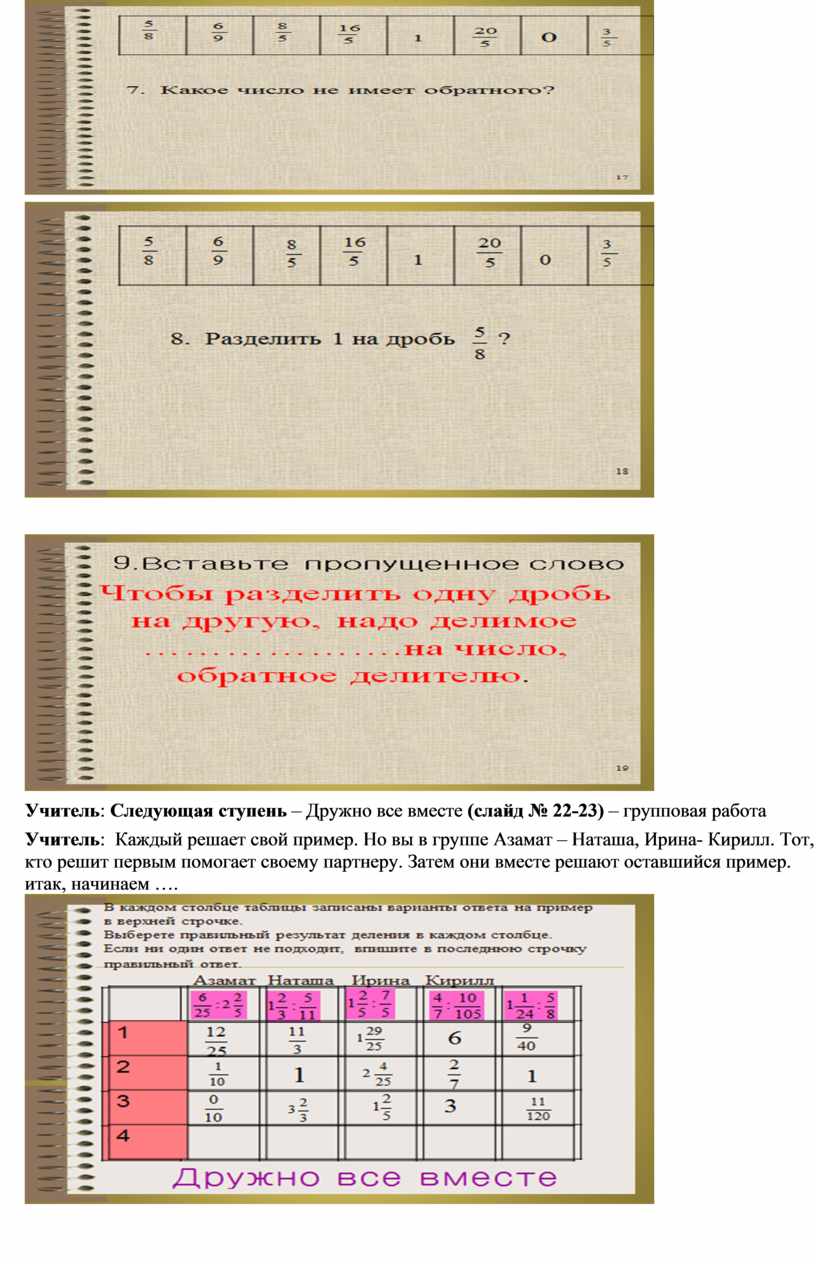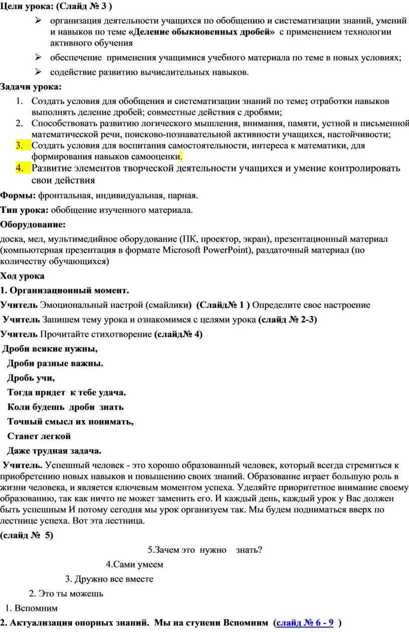 Ø организация деятельности учащихся по обобщению и систематизации знаний, умений и навыков по теме «Деление обыкновенных дробей» с применением технологии активного обучения