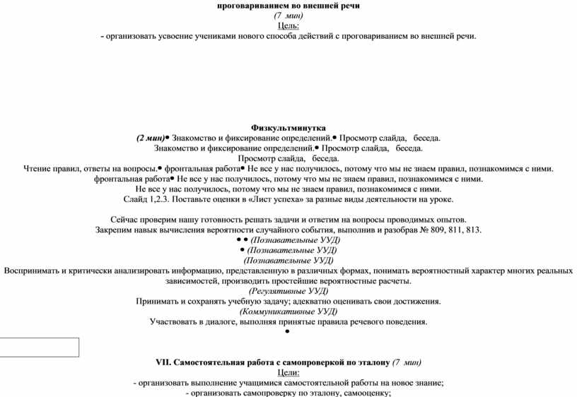 (Познавательные УУД) Понимать вероятностный характер многих реальных зависимостей, производить простейшие вероятностные расчеты. (Регулятивные УУД) Принимать и сохранять учебную задачу. (Коммуникативные УУД) Уметь строить свои монологические и диалогические высказывания с учетом конкретных речевых задач. |