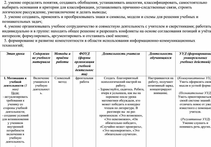 (Познавательные УУД) Формировать у учащихся функциональную грамотность – умение воспринимать и критически анализировать информацию. (Регулятивные УУД) Принимать и сохранять учебную задачу; адекватно оценивать свои достижения. (Коммуникативные УУД) Участвовать в диалоге, выполняя принятые правила речевого поведения. |