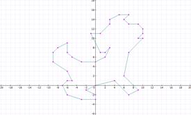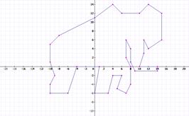 Тік бұрышты координаталар жүйесіне мына координаталары бойынша нүктені салып, кесінділермен қосып, белгілі жануардың суретін шығарыңдар.