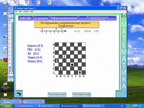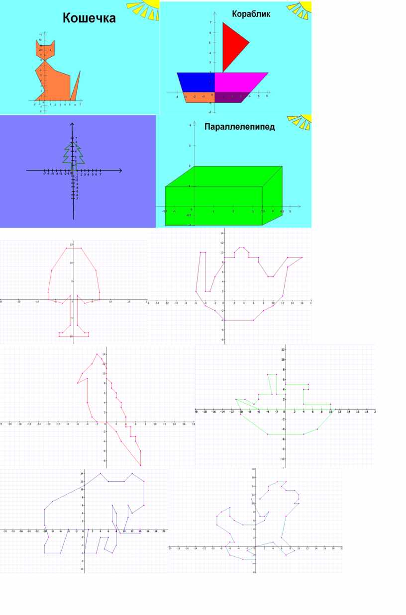 Содан соң тік бұрышты координаталар жүйесіне салынған суреттер көрсетіледі.