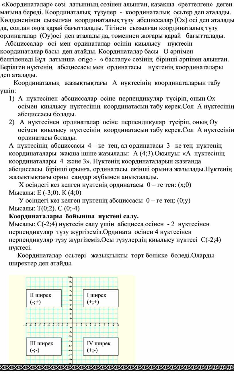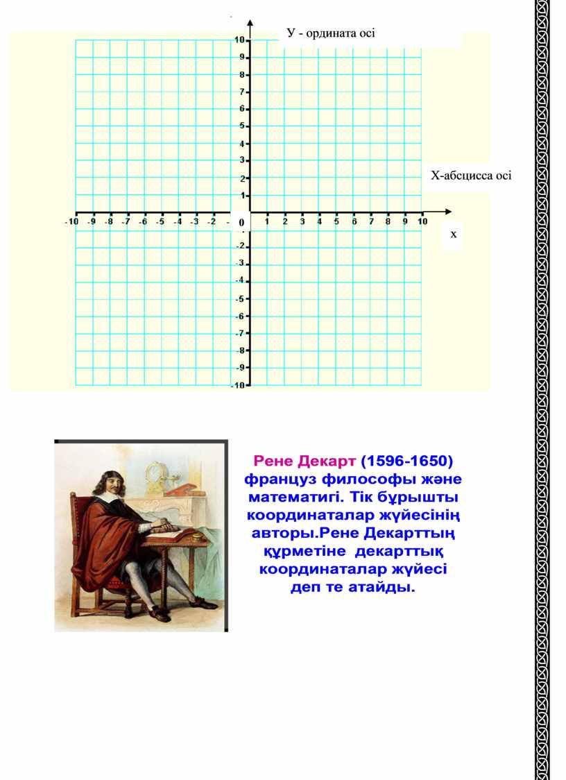 1. Жазықтықтағы тікбұрышты координаталар жүйесі. Координаталары бойынша нүктені салу.