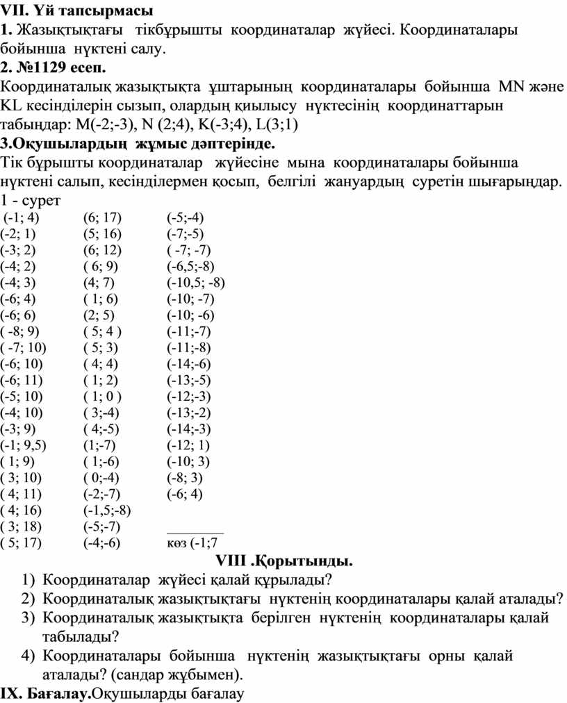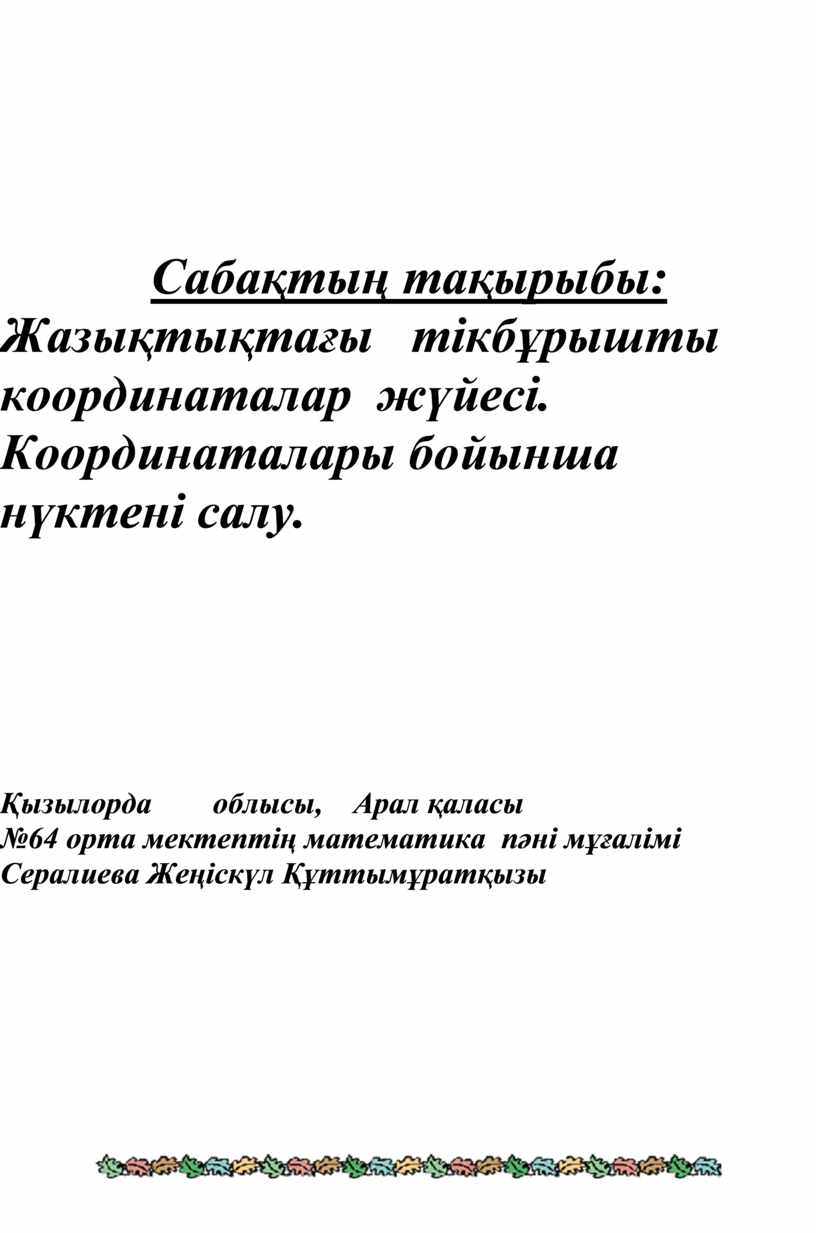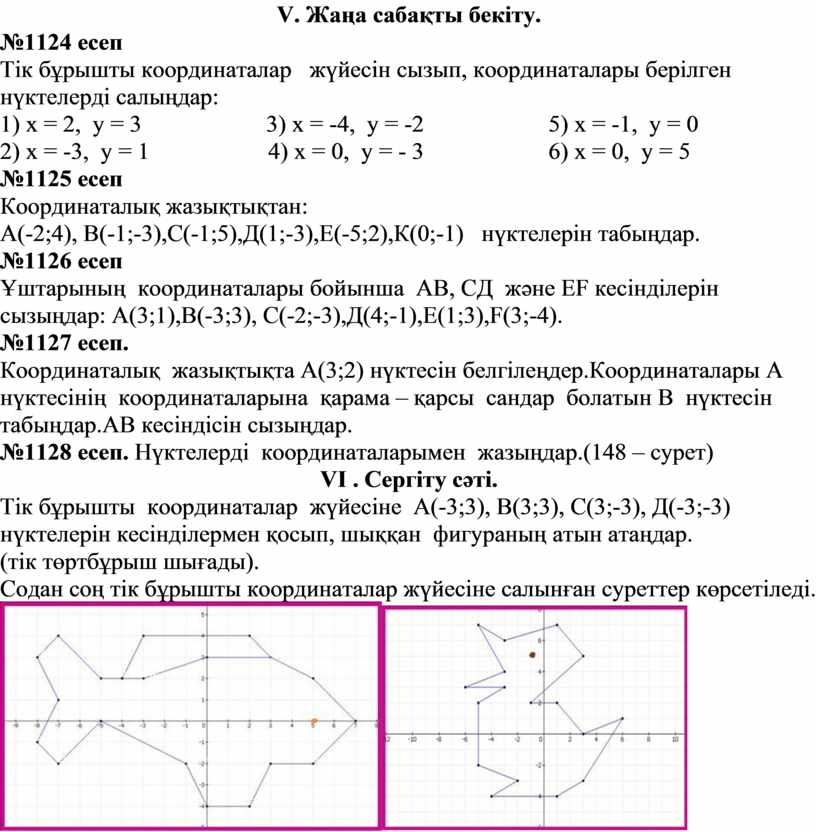 Сабақтың тақырыбы: Жазықтықтағы тікбұрышты координаталар жүйесі. Координаталары бойынша нүктені салу.