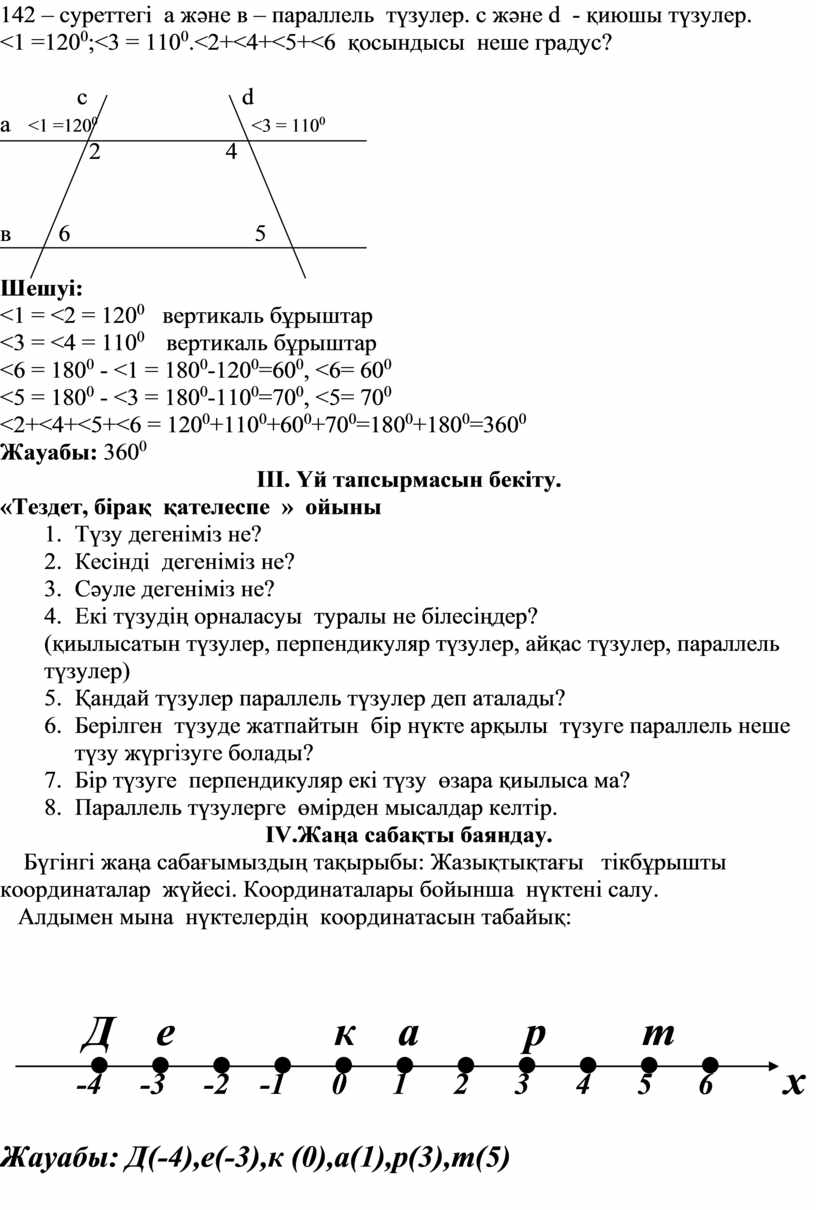 Сабақтың көрнкілігі: интерактивті тақта, презентациялар, суреттер, үшбұрышты сызғыш,оқушылардың жұмыс дәптері.