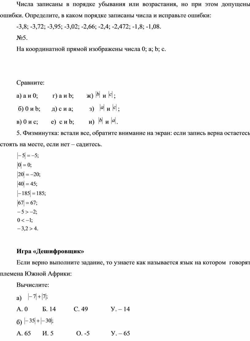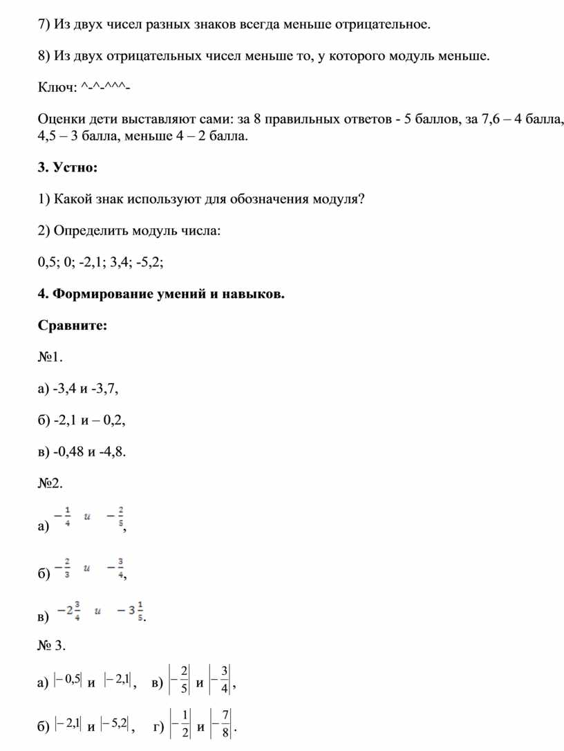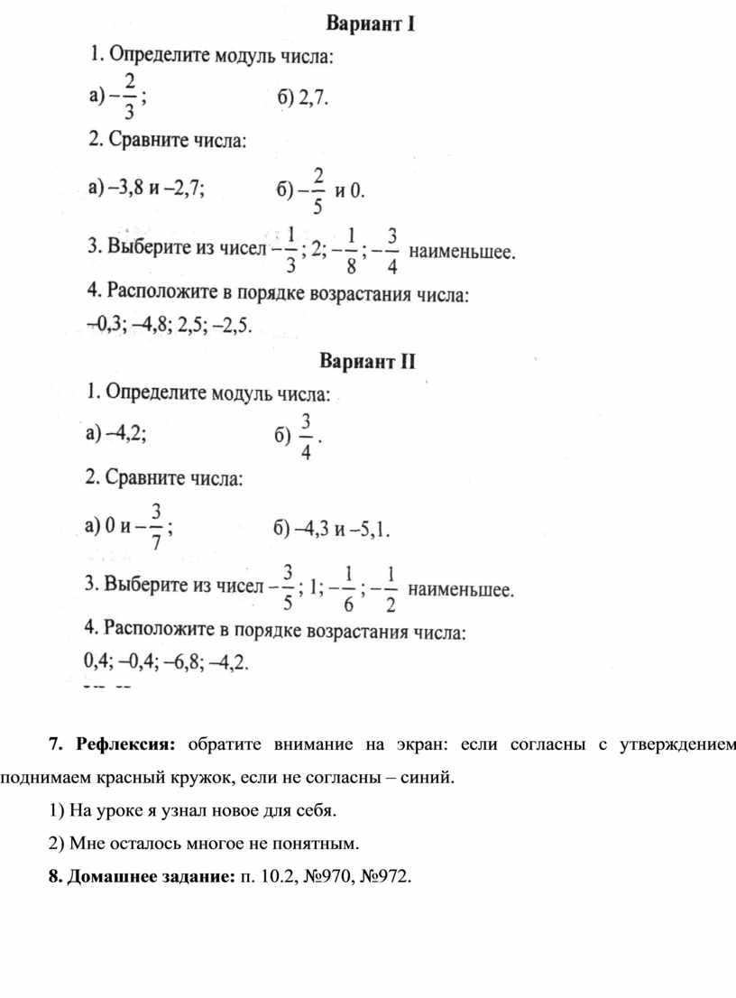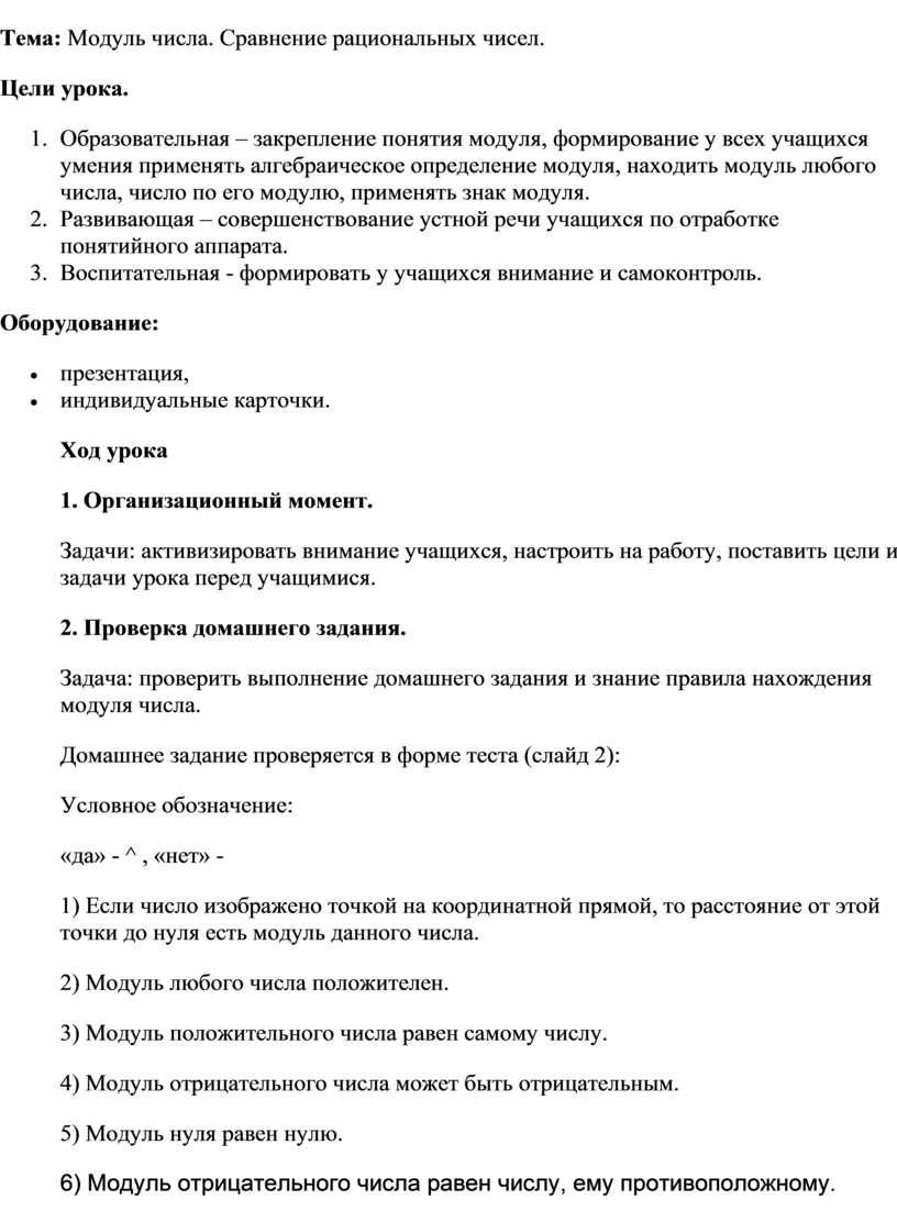 Задача: проверить выполнение домашнего задания и знание правила нахождения модуля числа.