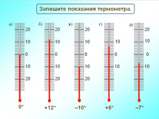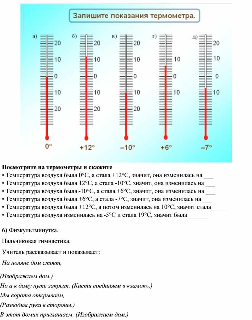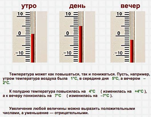 • Температура воздуха была +6°С, а стала -7°С, значит, она изменилась на ___