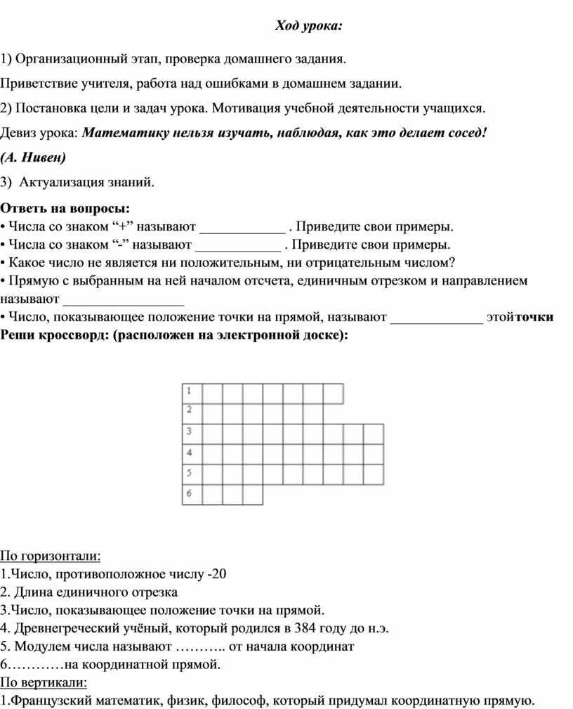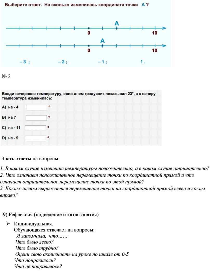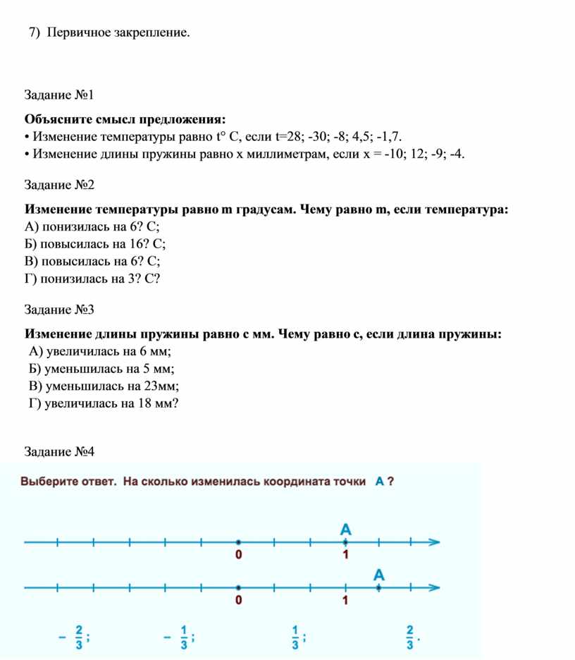 1.2. Ввести понятие «изменение величин»; обобщить , систематизировать изученный материал по теме «Положительные и отрицательные числа»