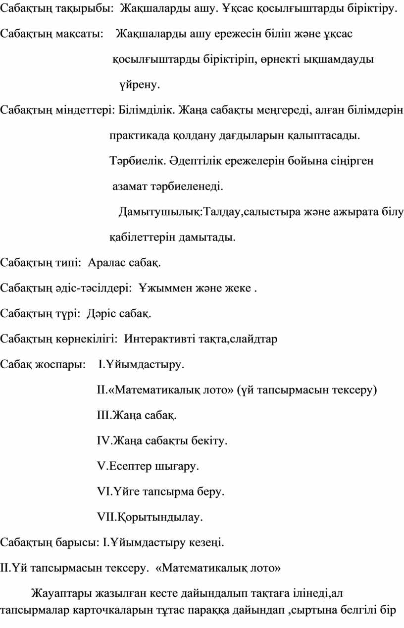 Сабақтың міндеттері: Білімділік. Жаңа сабақты меңгереді, алған білімдерін