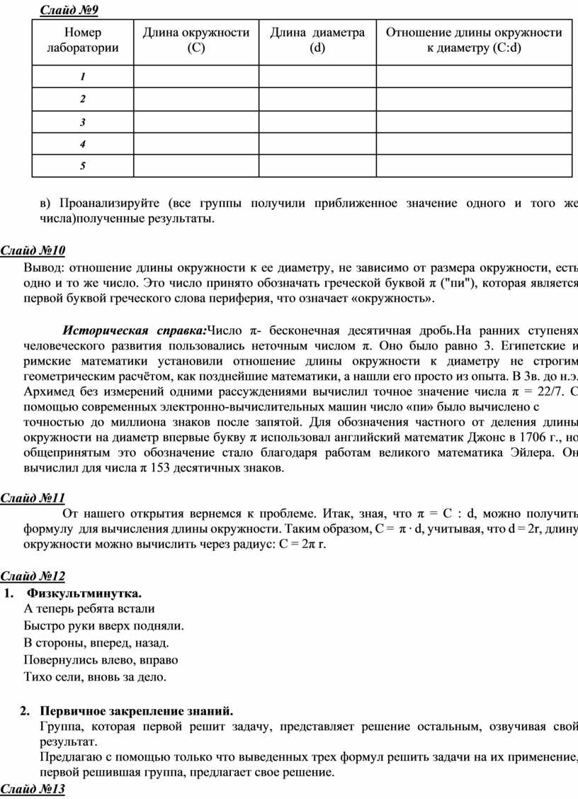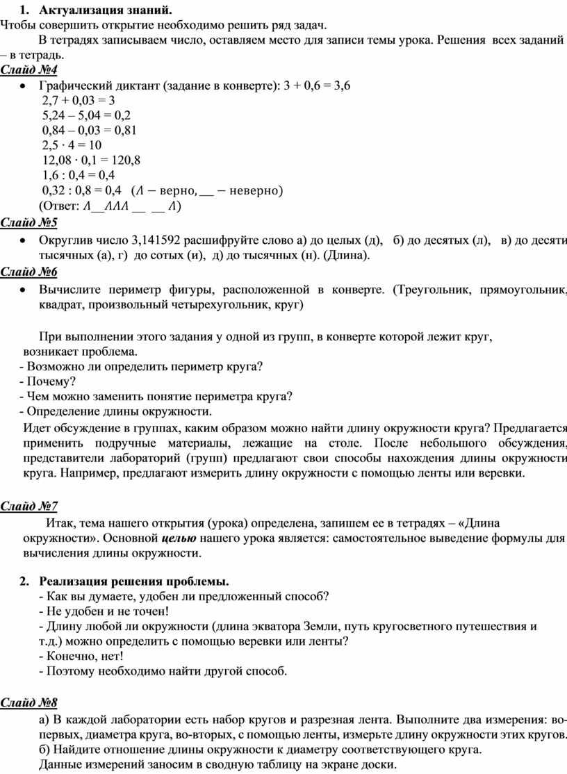 3. Самостоятельное выведение формулы для вычисления длины окружности.