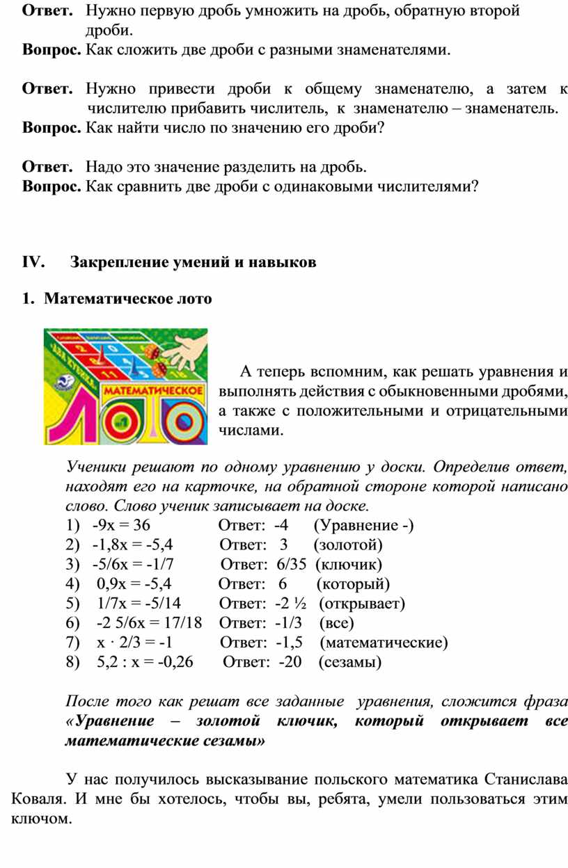А теперь вспомним, как решать уравнения и выполнять действия с обыкновенными дробями, а также с положительными и отрицательными числами.