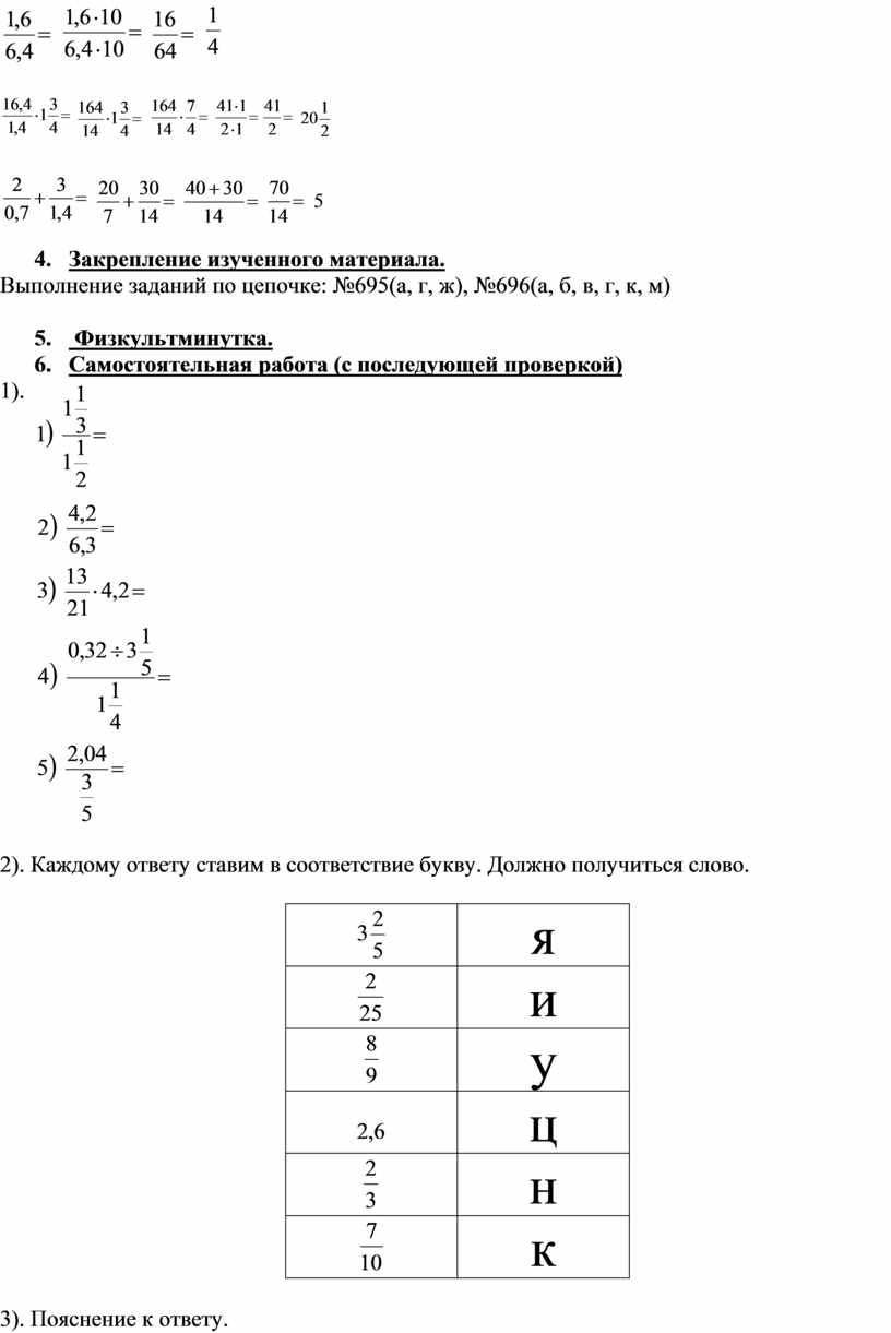 Выполнение заданий по цепочке: №695(а, г, ж), №696(а, б, в, г, к, м)
