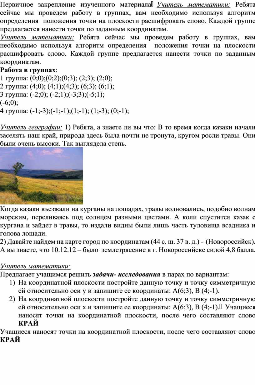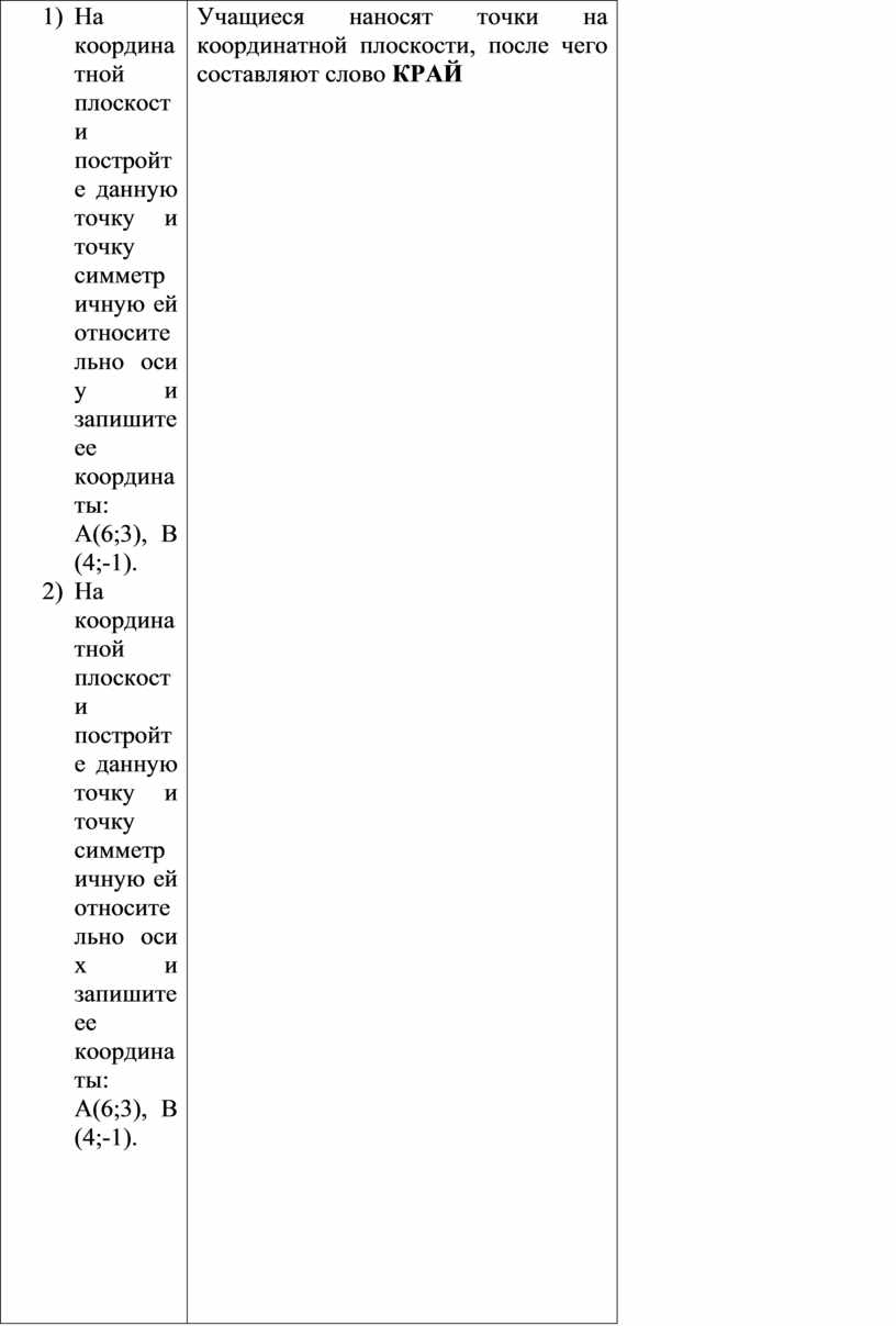 Учащиеся наносят точки на координатной плоскости, после чего составляют слово КРАЙ