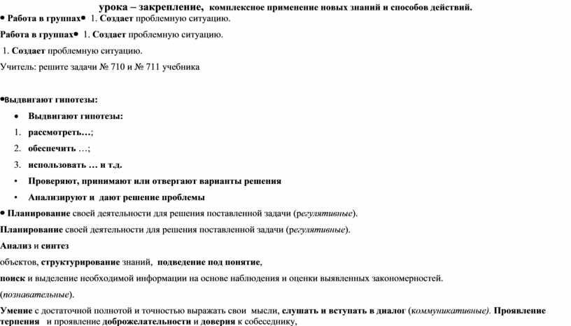 1. Создает проблемную ситуацию. Учитель: решите задачи № 710 и № 711 учебника