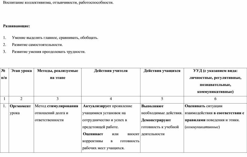 Воспитание коллективизма, отзывчивости, работоспособности.