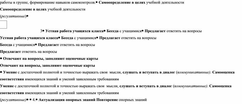 Умение с достаточной полнотой и точностью выражать свои мысли, слушать и вступать в диалог (коммуникативные). Самооценка соответствия имеющихся знаний и умений заявленным требованиям (регулятивные) |