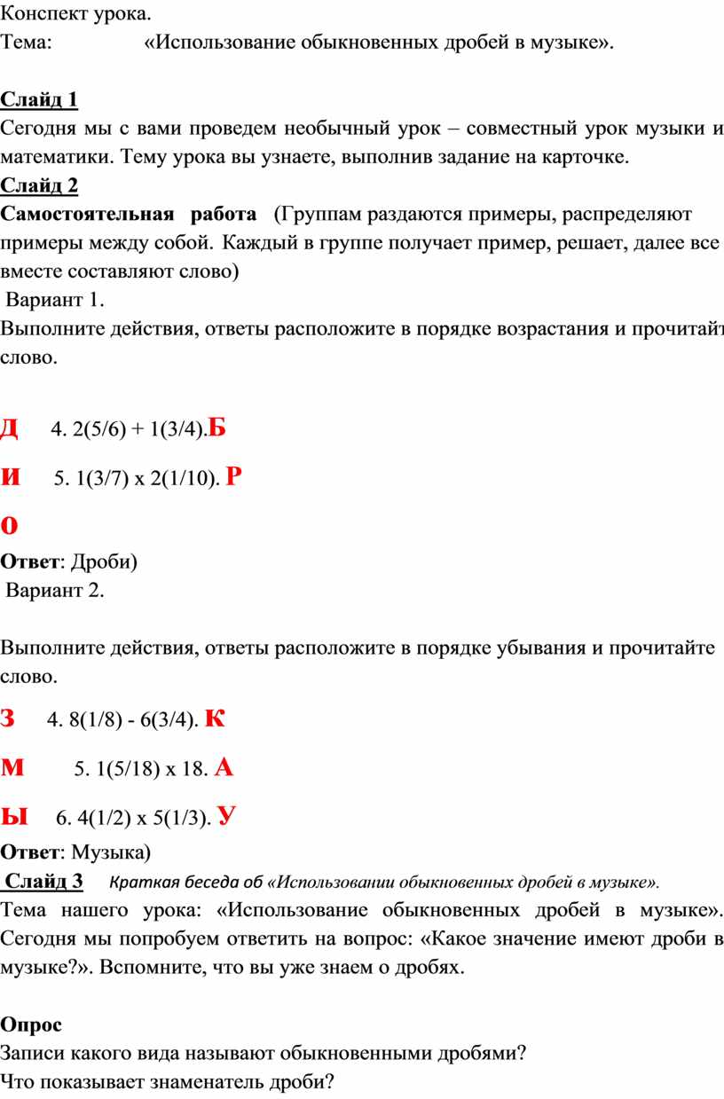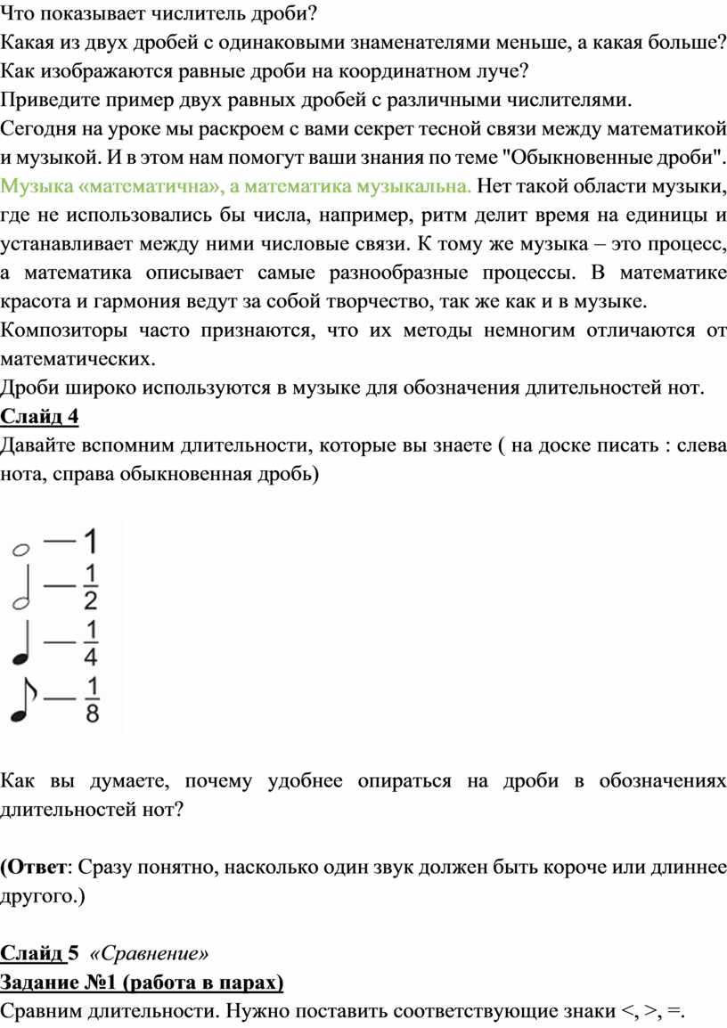Тема: «Использование обыкновенных дробей в музыке».