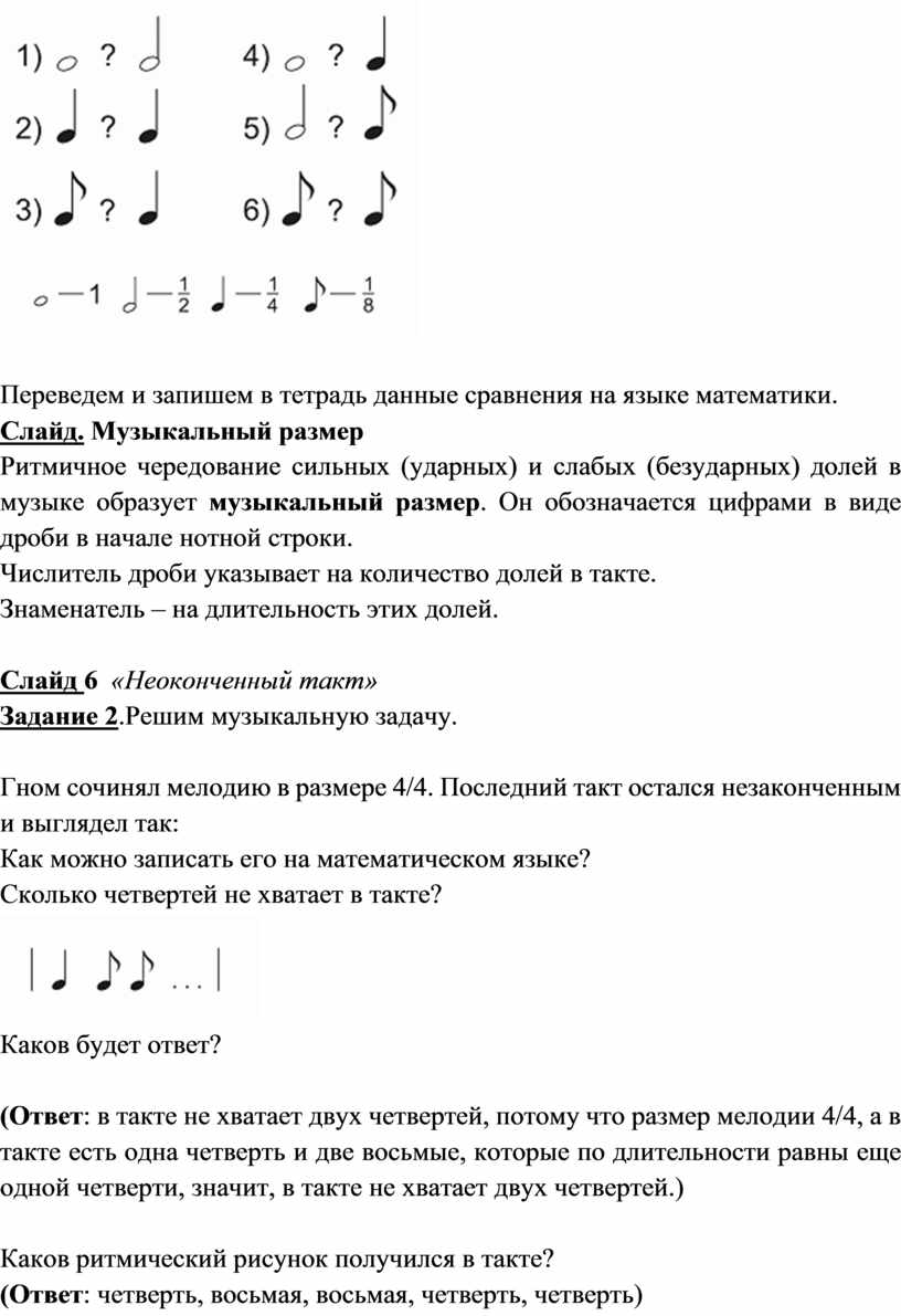 Слайд. Музыкальный размер