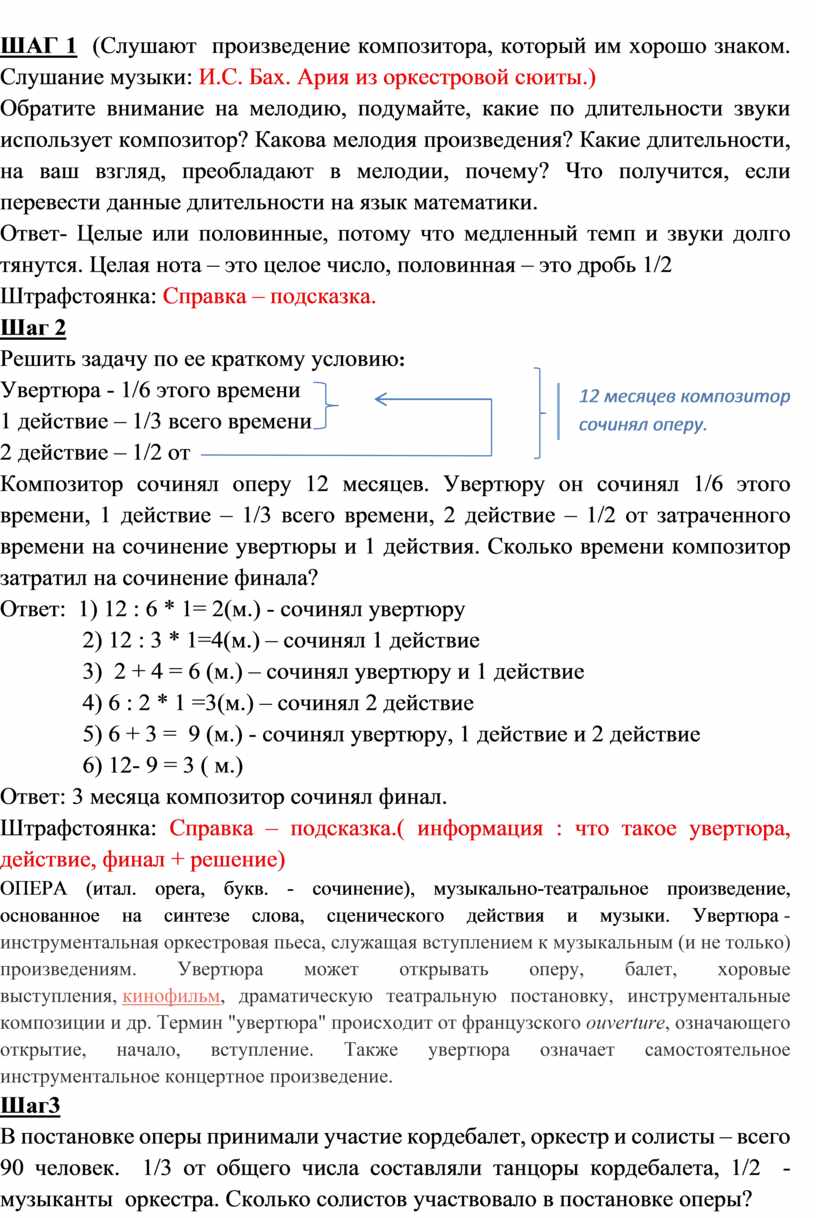Ответ: 1) 12 : 6 * 1= 2(м.) - сочинял увертюру