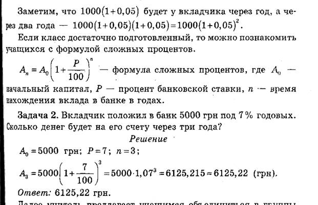 Для коллективного решения классу предлагается задача, связанная с начислением процентных денег.