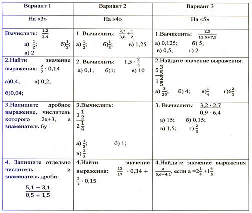 Выполнить тест по темам: Нахождение числа по его дроби. Дробные выражения в двух вариантах |