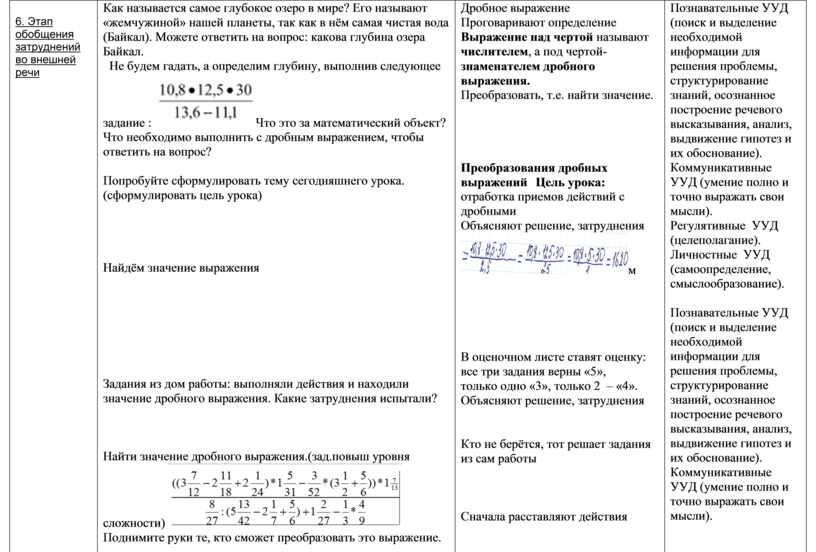 6. Этап обобщения затруднений во внешней речи