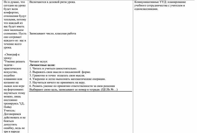 Коммуникативные УУД: планирование учебного сотрудничества с учителем и одноклассниками.