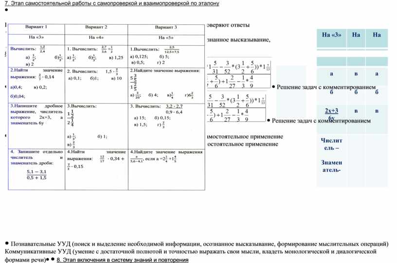 7. Этап самостоятельной работы с самопроверкой и взаимопроверкой по эталону