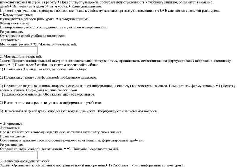 2. Мотивационно-целевой. Задача: Вызвать эмоциональный настрой и познавательный интерес к теме, организовать самостоятельное формулирование вопросов и постановку цели. |