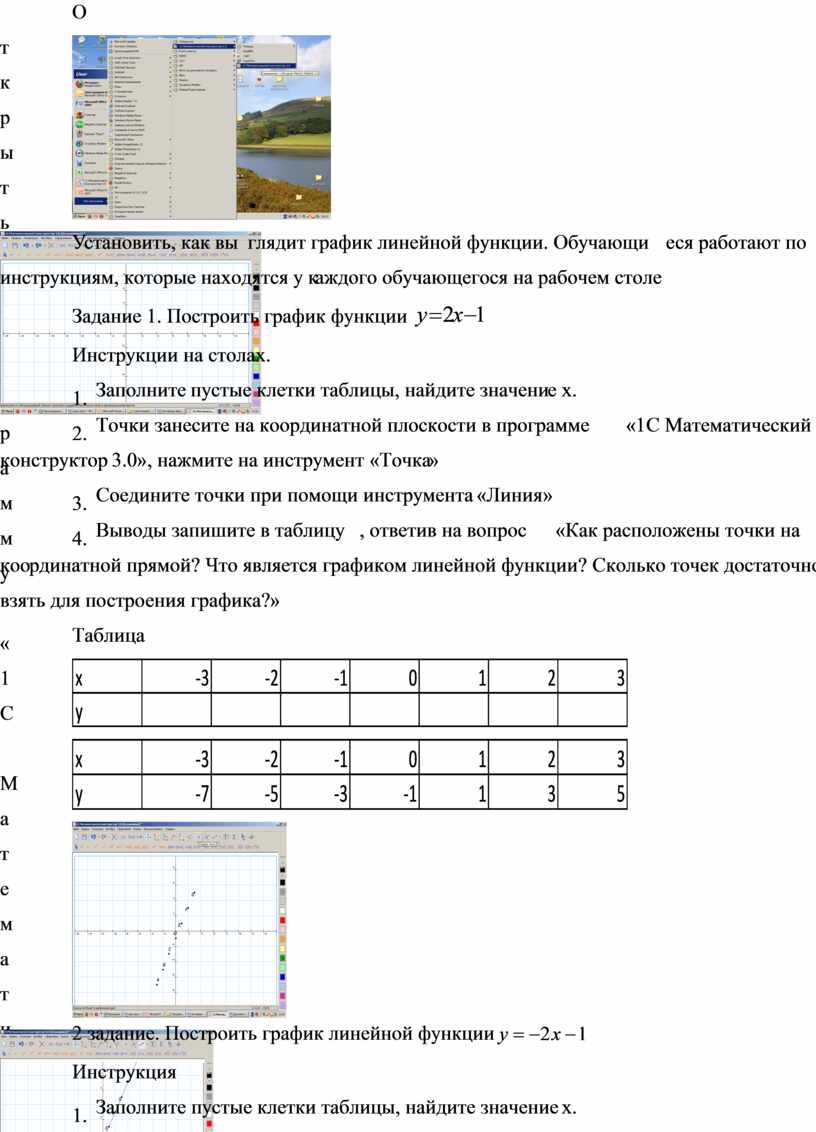 Установить, как выглядит график линейной функции. Обучающиеся работают по инструкциям, которые находятся у каждого обучающегося на рабочем столе