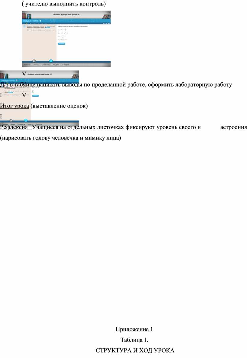 Выполняют лабораторную работу, анализируют и делают выводы, как располагается график линейной функции, в зависимости от коэффициентов, результаты заносят в таблицу |
