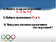 Задание 2. 1) Найдите квадраты выражений: b ; - 3 ; 6а ; 7х2 у3? 2)Найдите произведение 5 b и 3 с. 3) Чему равно удвоенное произведение этих выражений? 4)Как найти площадь квадрата со стороной а? 5)Площадь прямоугольника со сторонами а и в?