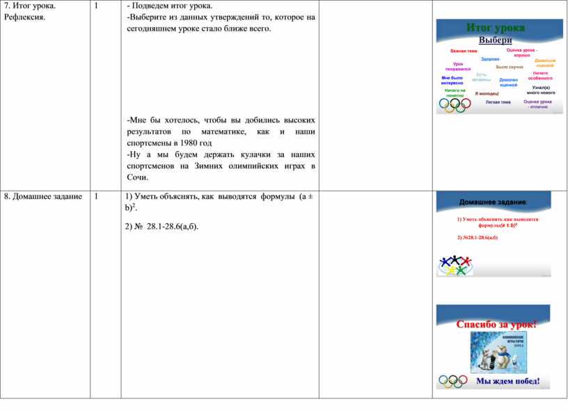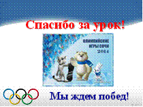 -Мне бы хотелось, чтобы вы добились высоких результатов по математике, как и наши спортсмены в 1980 год -Ну а мы будем держать кулачки за наших спортсменов на Зимних олимпийских играх в Сочи. |