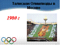 -Талисманом Игр был медвежонок Миша. - А 7 февраля открываются XXII Зимние Олимпийские Игры в Сочи. - Официальными талисманами зимних Олимпийских игр 2014 стали Белый медведь, Зайка и Леопард.