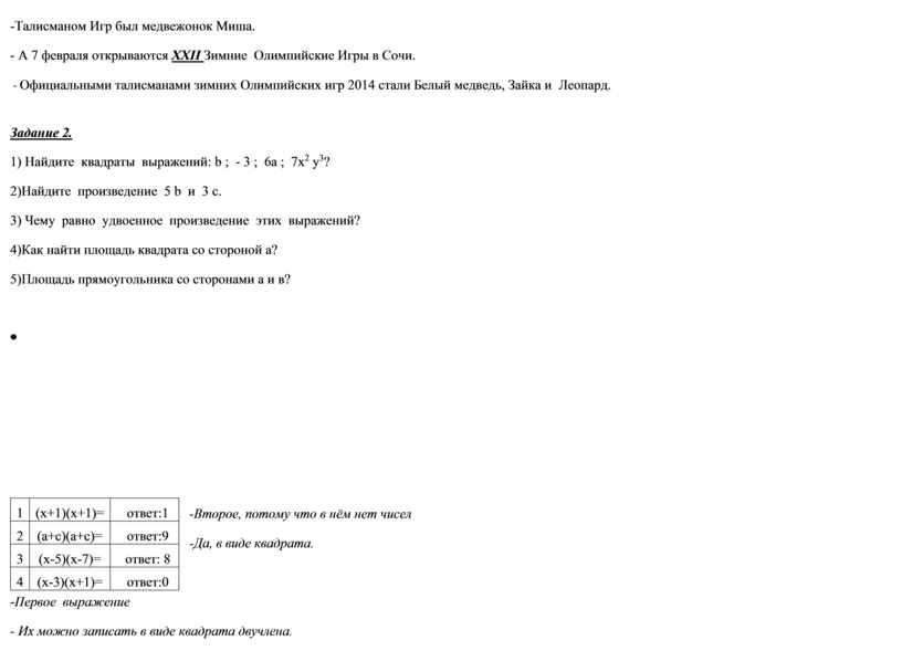 -Второе, потому что в нём нет чисел -Да, в виде квадрата.